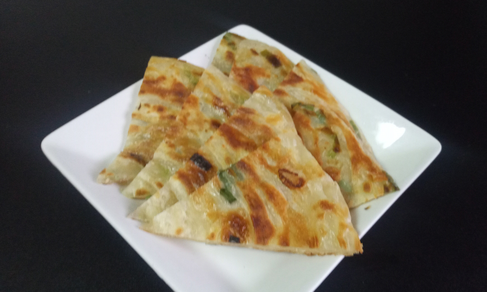 名前の通り、ネギが入った小麦粉の生地を手で薄く伸ばして焼いた「ネギ入りのパンケーキ」のような食べ物だ。